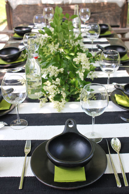 The whimsical black-and-white dining room. The rusty old garden chairs were picked up for a song at a second-hand store on Shelter Island and deliberately left as they were. (Rhea simply put some striped cushions in for comfort.) These chairs really make this space. They are adorable.